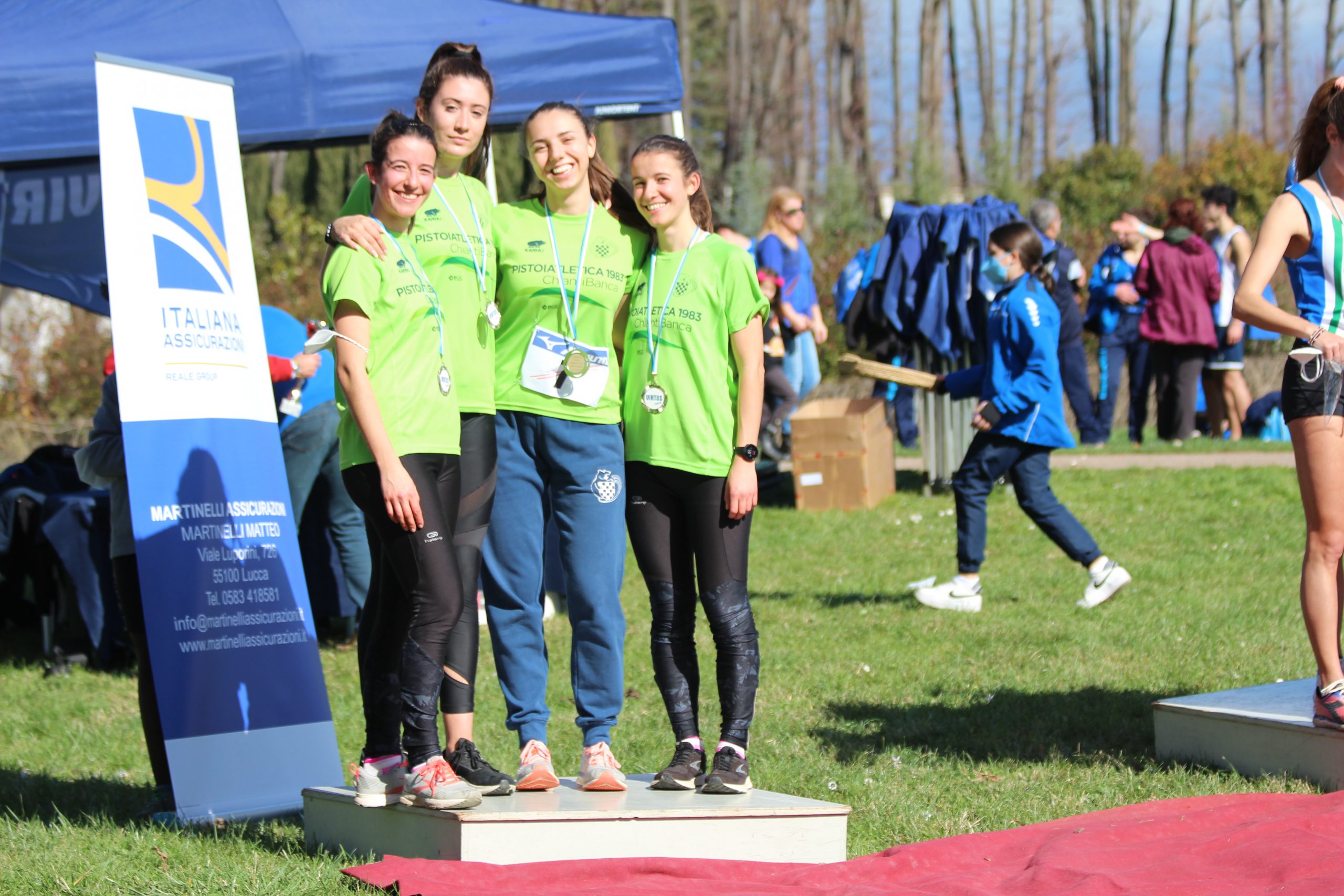 Ottime prove dai Campionati Toscani di staffette di cross che si sono svolti a Lucca. In copertina la staffetta assoluta femminile composta da Giulia Lenaz, Anna e Sara Pacini ed Alessia Magnifico che ha conquistato la medaglia d’argento nella staffetta 4×2000 m con il tempo di 31:16.6. Buon piazzamento anche per la staffetta maschile composta da Manuel Clemente, Tommaso Magni, Giampaolo Tobia ed Edoardo Tesi che ha chiuso in 12° posizione con il tempo di 26:21.1.