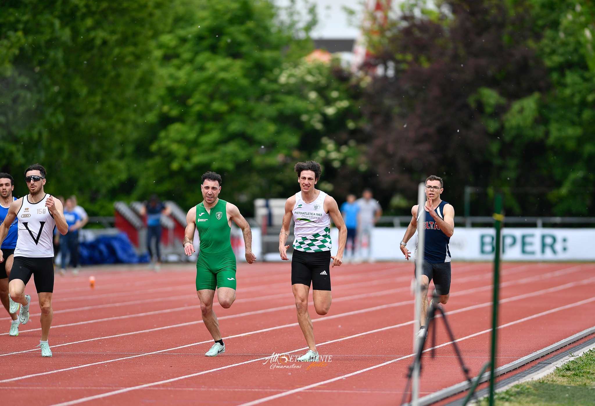 Prove positive anche per Gabriele Sichi, ad un decimo dal PB con 22.85, Jurghen Gjura che invece si migliora correndo in 23.18, così come Zeno Salvadori in 23.38, poi Massimiliano Maestripieri con 23.64 e l’allievo Matteo Squarcini che esordisce sulla distanza con  24.24, appesantito da un vento contrario di -1.7.