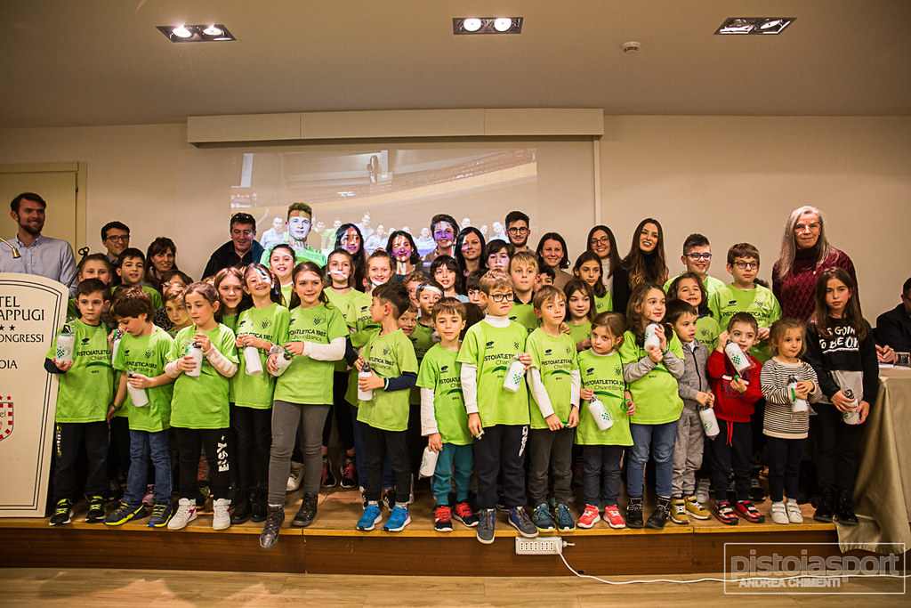Si è tenuta Giovedì 12 Dicembre presso l’Hotel Villa Cappugi di Pistoia la premiazione della PistoiAtletica 1983 Chianti Banca per la stagione 2019. Ospiti della serata il membro del consiglio di amministrazione di Chianti Banca Giorgio Petracchi, il presidente della FIDAL Toscana Alessio Piscini, l’assessore allo sport del Comune di Pistoia Gabriele Magni, il delegato provinciale del CONI Vittoriana Gariboldi ed il delegato provinciale della FIDAL Stefano Giovannetti. Nel corso della serata sono stati premiati gli atleti che si sono maggiormente distinti durante l’annata agonistica 2019 oltre ai ragazzi delle associazioni Agrabah ed Il Sole, le due Onlus con le quali la nostra società collabora al progetto Special Olympics. Oltre ai successi individuali sono stati sottolineati dal presidente Gianluca Fini e dal direttore tecnico Michele Giacomini i più importanti risultati di squadra conseguiti nel 2019: si va dal successo nella finale nazionale di Serie B dei Campionati di Società Allievi al 2° posto nel Gran Prix Montalbano, manifestazione riservata agli Esordienti, fino al 4° posto a livello nazionale nei Campionati di Società di Prove Multiple Allievi oltre ai titoli regionali conseguiti nelle staffette 4×400 Juniores femminile e 4×400 Promesse femminile. A livello individuale sono stati premiati prima gli atleti del settore promozionale partendo dagli Esordienti vincitori del Gran Prix Montalbano nelle rispettive categorie Alberto Dalla Rosa, Marta Tesi e Maria Caterina Baroncelli, per poi passare alle neoprimatiste sociali Sofia Corsini (getto del peso Ragazze), Marta Biagini (3000m Marcia Cadette), Giulia Civoli (lancio del disco e lancio del giavellotto Cadette) ed Irene Trinci (salto in lungo Cadette). Passando al settore assoluto i riconoscimenti sono andati a coloro che nel corso della stagione 2019 hanno preso parte a Campionati Italiani, vinto titoli regionali o stabilito nuovi record sociali: Rebecca Lenzi (getto del peso Promesse), Erica Tesi (getto del peso ed Eptathlon Allieve), Giulia Lenaz (cross Allieve), Simone Gasperetti (cross Juniores), Lucrezia Sepiacci (lancio del disco Promesse), Marta Calvani (staffetta 4×400 Promesse), Laura Campagna (staffetta 4×400 Promesse), Alessandra Scoccati (staffetta 4×400 Promesse), Alessia Magnifico (400 hs Juniores, staffetta 4×400 e 4×200 Juniores) , Anna Rossi (staffetta 4×400 e 4×200 Juniores), Giulia Cutini (100 hs Promesse, staffetta 4×100 e 4×400 Promesse), Giulia Severini (staffetta 4×400 Juniores)ed Alice Tuci (staffetta 4×100 Promesse). Sempre a livello assoluto i premi per le migliori prestazioni tecniche sono andati a Rebecca Lenzi (getto del peso), Alessia Magnifico (400 hs), Michele Pacini (400 m), Giulia Cutini (100 hs) e Lorenzo Ferri (110 hs). Ultima premiazione della serata, in ordine temporale e non certo per importanza, quella risevata alla squadra Allievi protagonista prima del 4° posto ottenuto ai Campionati Italiani di Società di Prove Multiple con Gabriele Sichi, Lorenzo Sichi, Alessio Geri, Tommaso Paoli ed Andrea Consolmagno e poi della vittoria nella finale di serie B dei Campionati Italiani di Società con Giacomo Bonvicini (100 m, 4×100 e 4×400), Alessio Pelagatti (200 m, 4×100 e 4×400), Dickson Aduwa (400 m e 4×400), Edoardo Tesi (800 m e 1500 m), Pietro Boiardi (2000 st e 3000 m), Jacopo Tasselli (800 m e 1500 m), Matteo Tuci (2000 st e 3000 m), Gabriele Shkurtaj (5000 m Marcia), Gabriele Sichi (100 m), Lorenzo Sichi (salto in lungo, getto del peso e 4×100), Alessio Geri (salto in alto e salto triplo), Andrea Consolmagno (400 hs e 4×400 m), Tommaso Paoli (lancio del disco) e Giovanni Tognozzi (lancio del martello e lancio del giavellotto).